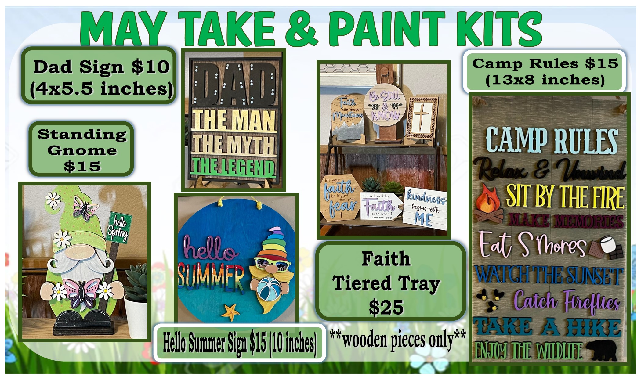 MAY 2023 TAKE AND PAINT KITS! Share this: Share on Facebook (Opens in new window) Facebook Share on X (Opens in new window) X Like Loading...
