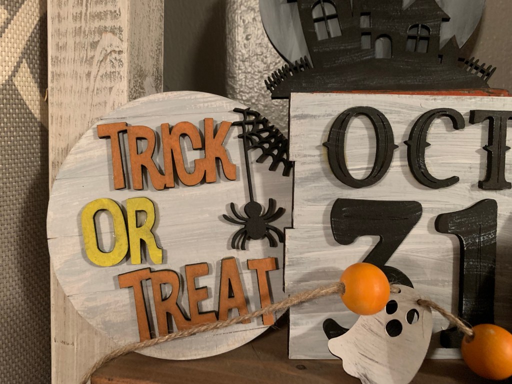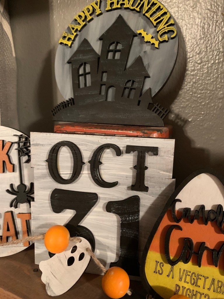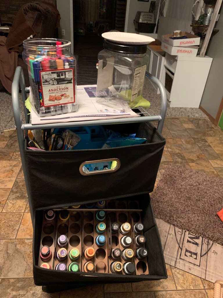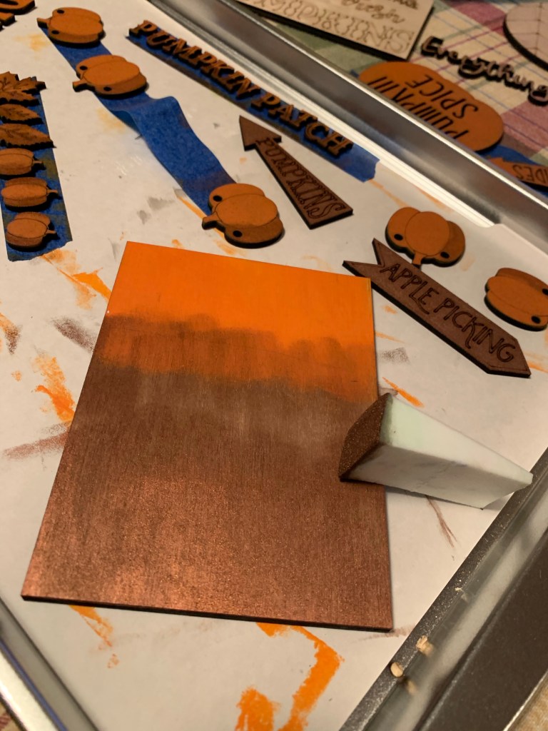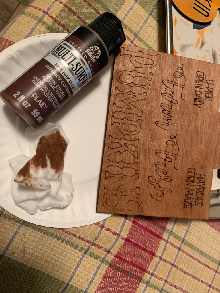 Here are some tips that help with painting. We put small letters and pieces on masking tape and paint away. All of the red items go on one piece of tape, all the white on another… makes them easier to paint. We also use both brushes and makeup sponges!